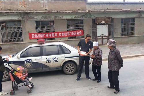 为深入推进“不忘初心、牢记使命”主题教育活动,弘扬中华民族尊老敬老、关爱妇孺传统美德,全面保障老年人及妇女儿童的合法权益,按照市中院部署,9月26日、27日,蔚县法院依托“一乡一法庭”工作平台,十三个“一乡一庭”庭长深入到乡镇开展“孝老敬亲、和家睦邻”法制宣传活动。